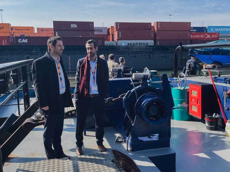 Ceux qui le souhaitaient ont pu découvrir le port depuis l’eau en embarquant à bord du pousseur-remorqueur « SSB WILD MAA », et apprécier les installations portuaires sous l’angle unique de la navigation intérieure. À bord, les participants ont pu observer les manœuvres des convois poussés et des bateaux de navigation intérieure et se faire une idée de l’infrastructure essentielle au fonctionnement fluide du port.