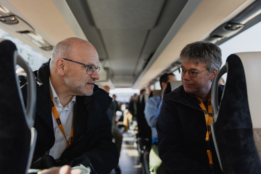 En discussion : Martin Candinas et Florian Röthlingshöfer sur l’avenir des ports rhénans et du transport de marchandises. © LITRA