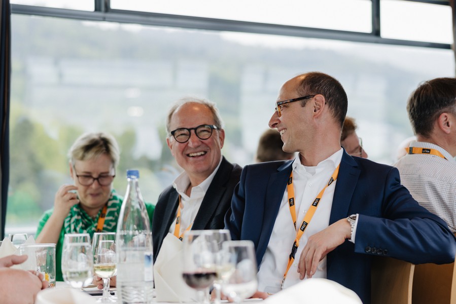 Neben den exklusiven Besichtigungen am Bahnhof Bern und im Bus-Depot von Bernmobil durfte auch der Austausch nicht zu kurz kommen. Dafür reisten die geladenen Gäste im Nostalgie-Triebwagen «Wellensittich» der BLS von Bern nach Thun, bevor es von dort auf eine gemütliche Schifffahrt ging. BLS-CEO, Daniel Schafer, sprach im Rahmen einer Podiumsdiskussion mit LITRA-Geschäftsführer, Michael Bützer, über die aktuellen Herausforderungen des öffentlichen Verkehrs auf der Strasse, der Schiene – und nicht zuletzt auf dem Wasser.