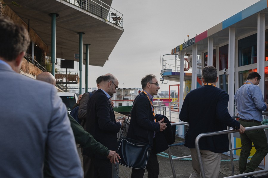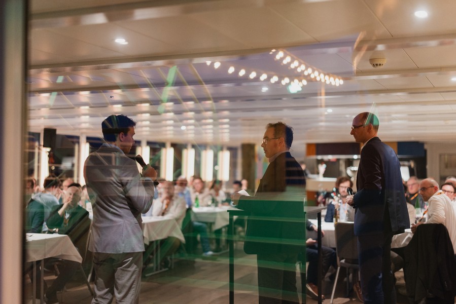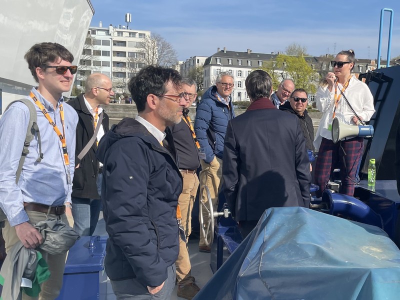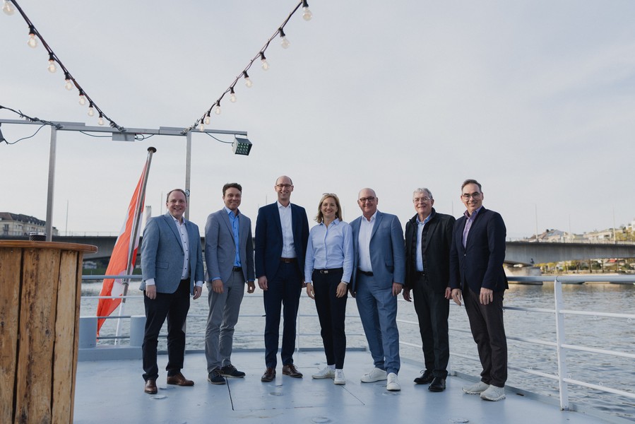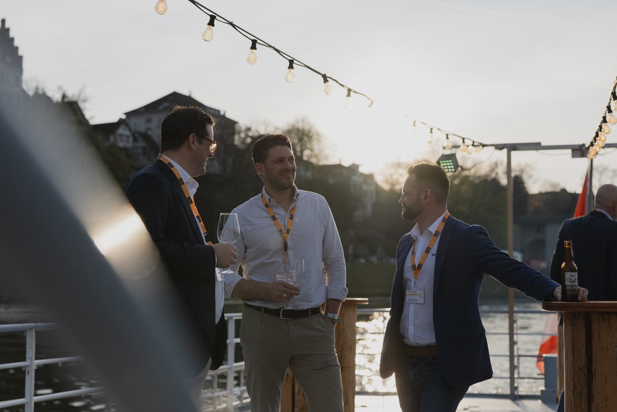 Im Anschluss an den exklusiven Blick hinter die Kulissen der Schweizerischen Rheinhäfen ging es für die geladenen Gäste aufs Wasser. Während einer Schifffahrt durch die Basler Hafenanlagen bot sich Gelegenheit zum Austausch und Networking.