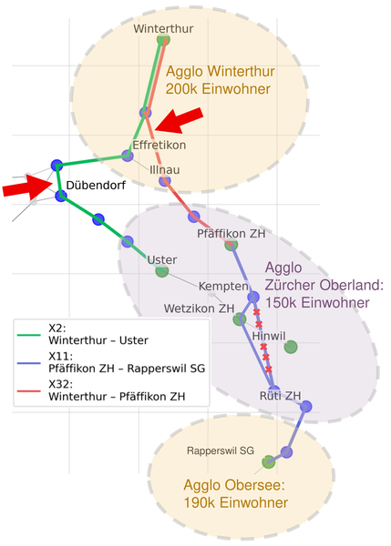 Die dritte vorgeschlagene Direktverbindung würde von Pfäffikon (ZH) nach Rapperswil führen. Auf der Strecke liesse sich eine S-Bahn-Linie realisieren, ohne dass die Infrastruktur ausgebaut werden müsste. Würden die Ausbauvarianten Winterthur – Pfäffikon (ZH) und Pfäffikon (ZH) – Rapperswil kombiniert, könnte die Reisezeit zwischen den Agglomerationen Winterthur und Obersee, die beide von einem starken Wachstum geprägt sind, von heute 50 Minuten (mit zweimaligem Umsteigen) auf 40 Minuten (ohne Umsteigen) reduziert werden.