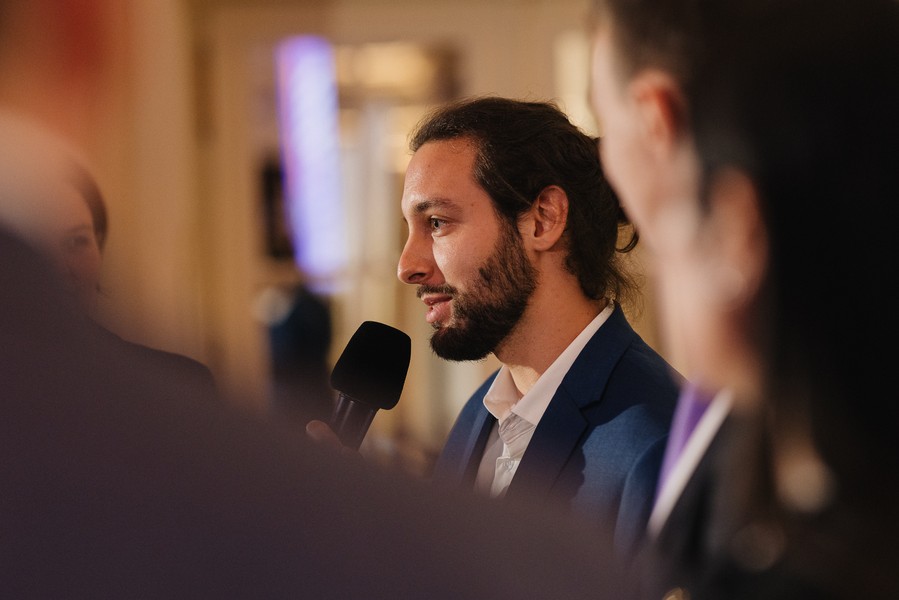 Wie können Ausbauvarianten algorithmisch generiert und bewertet werden, um robuste Entscheidungen bezüglich zukünftiger Bahn-Projekte zu ermöglichen? Silvano Fuchs präsentiert im Rahmen der Preisverleihung des Prix LITRA 2025 seine Ergebnisse. © LITRA