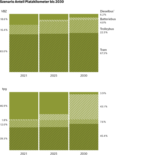 Nach Corona ist es Zeit, vorwärtszuschauen. Denn die Vorteile des öV liegen auf der Hand: Er ist energieeffizient, bald vollständig klimaneutral und hat als Massentransport in einem Land mit zunehmender Verdichtung in Siedlungsgebieten eine zentrale Rolle. Diesen Aspekten des öV widmen wir fortan mehr Aufmerksamkeit. Der Hochlauf der Elektrifizierung von Busflotten ist ein Gradmesser für den Fortschritt des öV und der Smart Mobility im Allgemeinen. Freundlicherweise liefern uns die VBZ und die tpg aktuelle Zahlen zu den Plänen ihrer Flottenelektrifizierung. Als Nächstes wird Bernmobil Zahlen liefern, weitere werden folgen.