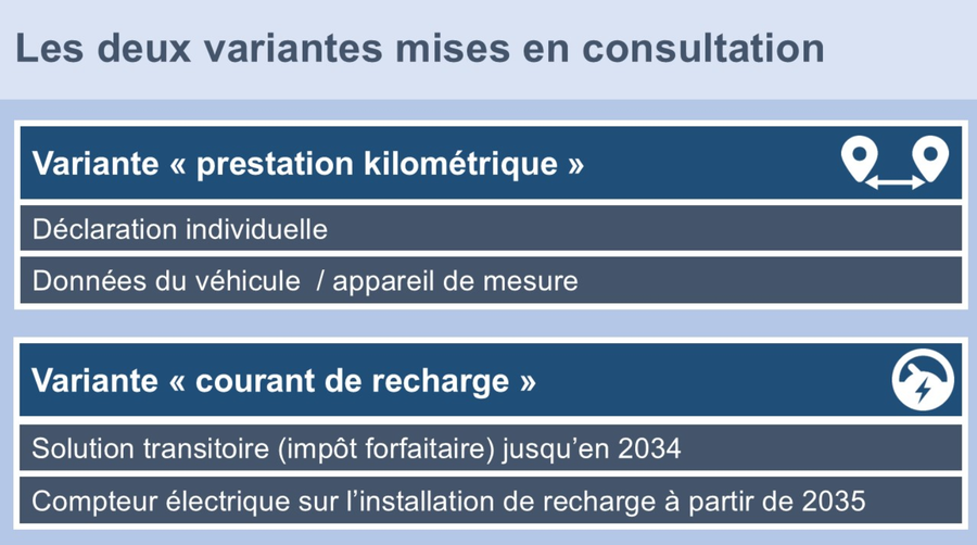 Elle a également présenté les deux propositions soumises à consultation par l’Office fédéral des routes (OFROU) : une redevance basée sur les kilomètres parcourus ou sur l’électricité utilisée pour la recharge, similaire au principe de l’actuel impôt sur les huiles minérales. Dans la première variante, les détentrices et détenteurs de véhicules peuvent choisir entre indiquer régulièrement le kilométrage de leur véhicule ou installer un appareil de saisie sur leur voiture pour la transmission directe des informations. Avec la variante « électricité utilisée pour la recharge », la quantité d’électricité consommée est mesurée à l’aide d’un compteur installé sur le dispositif de recharge, puis taxée. Étant donné que de nombreuses stations de recharge ne sont pas encore équipées de compteurs et que ceux-ci doivent d’abord être installés, cette variante prévoit une taxe forfaitaire jusqu’en 2034 à titre de solution intermédiaire.